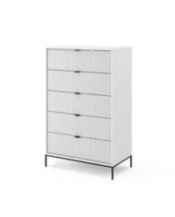 La commode Eliza séduit par son design contemporain qui s'intègre harmonieusement dans chaque salon ou chambre à coucher. Avec ses cinq tiroirs spacieux, la commode offre suffisamment de place pour ranger correctement les objets personnels. La surface de la commode est particulièrement facile à entretenir et se nettoie sans effort, ce qui lui donne un aspect neuf pendant longtemps. La commode fait partie de l'élégante série de meubles Eliza, qui permet d'aménager harmonieusement toute la pièce.---Détails techniques:Couleur:BlancDimensions:76 x 120 x 42 cm (LxHxP)Matériau :Panneau de...