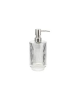 Le distributeur de savon Clarity et le porte-brosse à dents sont en verre cannelé avec un discret motif ondulé. La fine silhouette offre un look cool et élégant. Taille : 8 x 19 cm Verre Transparent Tête de pompe avec une finition argent brillante Volume 400 ml