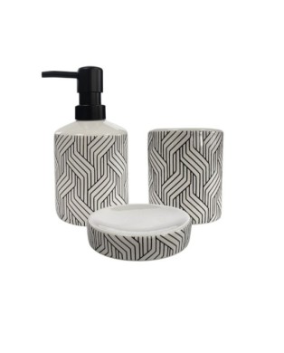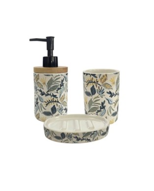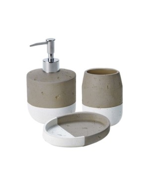Set de salle de bain taupe - SPA - LEVASSEURCe set de salle de bain en céramique, fait partie de la gamme SPA.Il contient un distributeur de savon, un porte savon et un porte brosse à dents.Cette gamme est conçue pour transformer vos accessoires de salle de bains en objet de décoration avec son effet de matière.Les pièces existent également à l'unité.CARACTERISTIQUES TECHNIQUES :Couleur: TaupeMatière: CéramiqueDimensions distributeur de savon : 11x11.5x17.5cmDimension porte-savon : 9.5x14x2.5cmDimensions porte-brosse à dents : 8x8x10.5cm