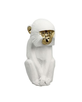 Cette figurine en forme de petit singe ludique, animera votre intérieur avec son petit côté joyeux et sa touche exotique. Votre petit animal de compagnie agrémentera votre intérieur d'un aspect chic et comtemporain. Figurine décorative singe assis Fait en résine blanche touches de dorées DIM : 9x9x26cm Poids : 0.785 kgs Chiffon sec