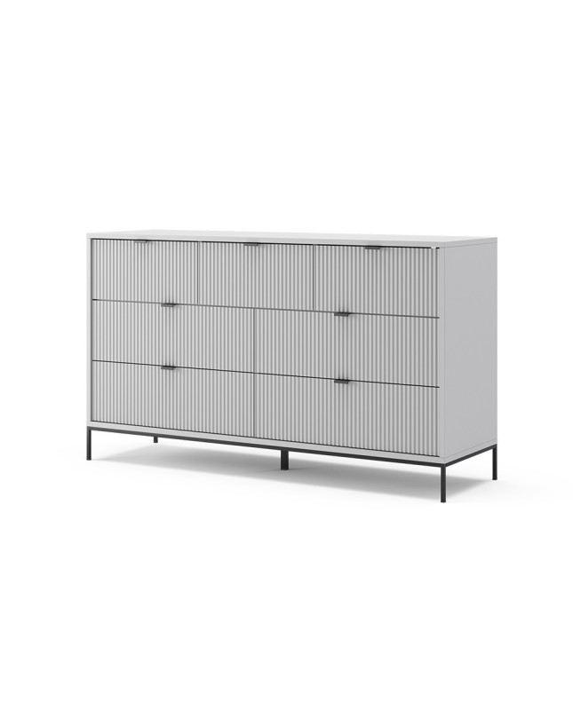 Description : Notre sideboard séduit par son design contemporain et élégant qui confère une touche de style à votre pièce. Avec un total de 7 tiroirs spacieux, la commode offre suffisamment despace de rangement pour organiser les vêtements, les accessoires et les objets personnels. La surface est facile à nettoyer et reste belle durablement, ce qui vous permet de passer moins de temps à lentretenir. La commode fait partie de lélégante série de meubles Eliza, qui permet daménager harmonieusement toute la pièce.---Données techniques:Couleur:GrisDimensions:140 x 81 x 42 cm (LxHxP)Matériau:Panneau de particules, 16 mmSurface:Revêtement en mélaminePoids net sans emballage:55.67 kg.Poids brut avec emballage:58.64 kg.---CONTENU DE LA LIVRAISON: Commode avec tiroirs, Instructions de montage, Matériel de montage