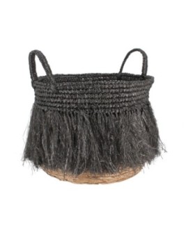 Description : Un jolie panier aux touches bohoème chic pour apporter un petit côté exotique à votre intérieur. Très pratique, il agrémentera à la perfection votre chambre ou votre salon tout en apportant un côté très naturel. N'hésitez pas à détourner son utilité pour en faire un jolie cache pot ! Panier en abaca naturel à franges synthetiques noires Coloris noir et naturel Usage intérieur ou extérieur abrité. Ne pas exposer aux intempéries. 42cm avec anses Ø36 X HT39 CM TYMNettoyer avec un chiffon sec