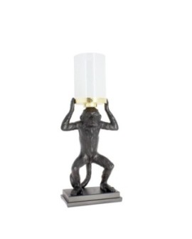 Description : Et si ce petit singe très ludique venait agrémenter votre salon? Un aspect très contemporain avec une petite touche antique qui viendra sublimer votre intérieur! Photophore avec une base en forme de petit singe noir ludique Photophore en verre Dimensions :19X10X46CM Utiliser un chiffon sec