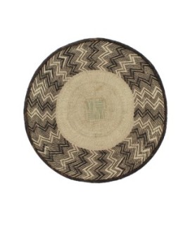 Description : Pour habiller son mur de la plus belle manière, ce panier typique africain fabriqué à partir de fibres végtales tissées à la main est tout simplement adorable. On craque pour le style ethnique et bohème chic de ce grand panier tissé avec ses touches de noires sous cette forme ronde. Souvent utilisé comme décoration murale, laissez parler votre imagination! Il est important de noter que toutes les pièces sont uniques et varient en dimension (entre 55 et 65 cm) et en motif (couleur et dessin). Panier en fibres végétales Tissé à la main au ZIMBABWE Dimensions : 55/65 cm (aléatoire) Usage intérieur ou extérieur abrité. Ne pas exposer aux intempéries. Toutes les pièces étant uniques, le motif et la couleur du tissage est aléatoireNettoyer à l'aide d'un chiffon sec