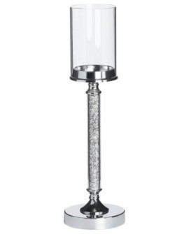 Bougeoir verre 48 cm argenté