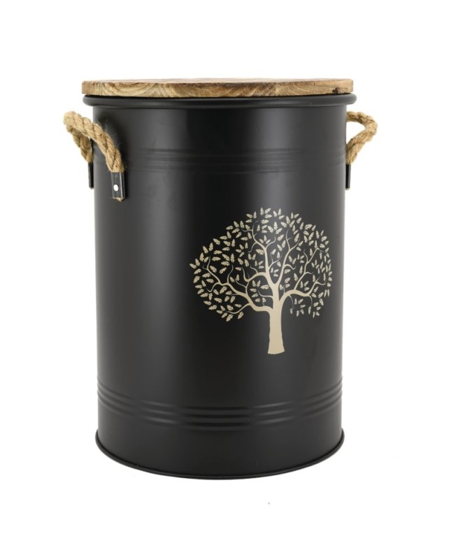 Tabouret et seau à pellets métal laqué arbre de vie