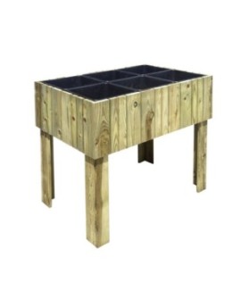 Description : Le carré potager surélevé composé de 6 bacs de chez Jardipolys est l'élément indispensable à avoir dans votre jardin ou sur votre terrasse.Ce carré potager est à la portée de tous : il nécessite très peu d'entretien grâce à sa culture hors-sol et n'encombrera pas vos espaces extérieurs. Vous pourrez ainsi y planter vos légumes de saison préférés afin de tout avoir à portée de main : plantes aromatiques, tomates, courgettes, radis et laitues par exemple. L'avantage de ce carré potager surélevé en bois est sa division en 6 cases distinctes avec des bacs en plastique afin d'ordonner de la plus simple des manières vos plantations. Le jardinage pour tous, à tout âge : vous n'aurez plus besoin de vous baisser ou de courber votre dos pour jardiner grâce à ce bac potager surélevé. Ses lignes verticales et sa jolie couleur bois apportera du charme à vos aménagements extérieurs afin d'ajouter une touche naturelle et une décoration respectant le thème de votre jardin.De plus, il vous sera tout à fait possible de personnaliser votre carré potager en le peignant si vous le désirez, cela lui permettra de se fondre dans le décor de vos espaces extérieurs. Nous vous conseillons de compléter le look de votre extérieur avec d'autres produits de la gamme VERTIKAL en faisant une composition de jardinières de différentes tailles au sein de votre jardin par exemple.À la recherche d'un carré potager en bois, en hauteur et élégant ? Jardipolys a ce qu'il vous faut !