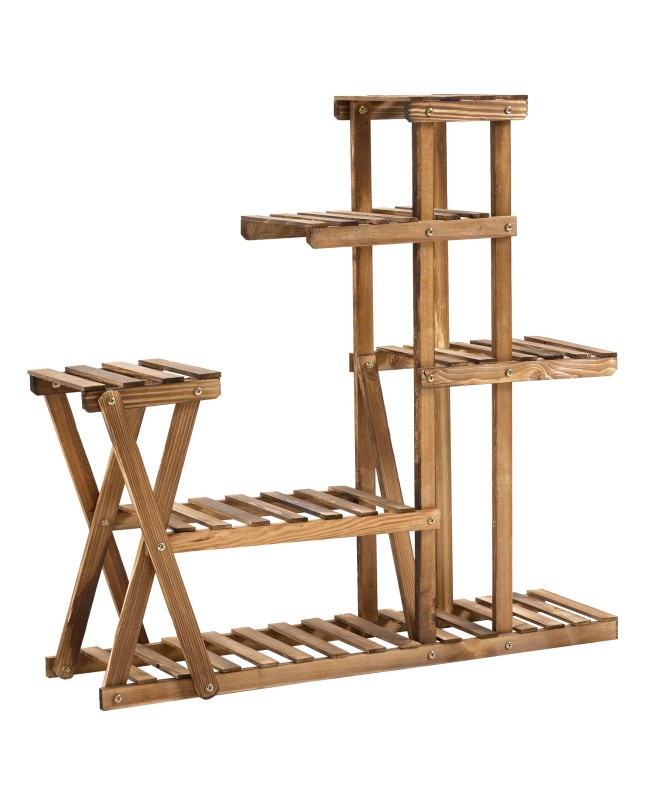 Étagère à fleurs 6 tablettes bois de sapin traité carbonisation