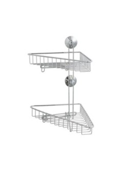 Description : Cette double étagère de bain d'angle fait partie de la gamme CONNIE.Cette étagère de bain est conçue en ABS chromé argent inox, durable et facile d'entretien. Elle se fixe grâce à une ventouse à vide d'air et supporte jusqu'à quatre kilos. CARACTERISTIQUES PRODUIT:Dimensions : 23x26,5x41cmCouleur: InoxMatière: ABS chromé argent Poids : 0,8kgVentouse à vide d'air en PVCSupporte jusqu'à 4kg