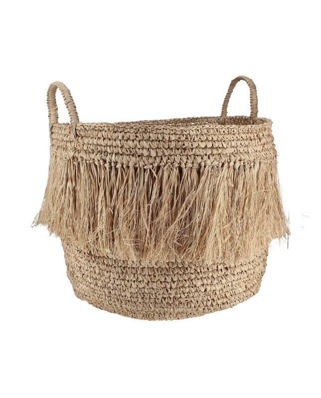 Description : Le panier Luys, original avec sa couronne de paille telle une jupe de vahiné et pratique à transporter grâce ses 2 poignées. Ce panier trouvera sa place dans un salon pour y ranger des magazines ou dans une chambre pour le linge et les jouets. On aime ce côté exotique chic qui agrémentera parfaitement votre intérieur ! Panier à franges en raphia aux tons naturels DIM : Ø44cm et hauteur 41cm Poids : 1.000 kg Nettoyer à l'aide d'un chiffon secUsage intérieur ou extérieur abrité. Ne pas exposer aux intempéries.