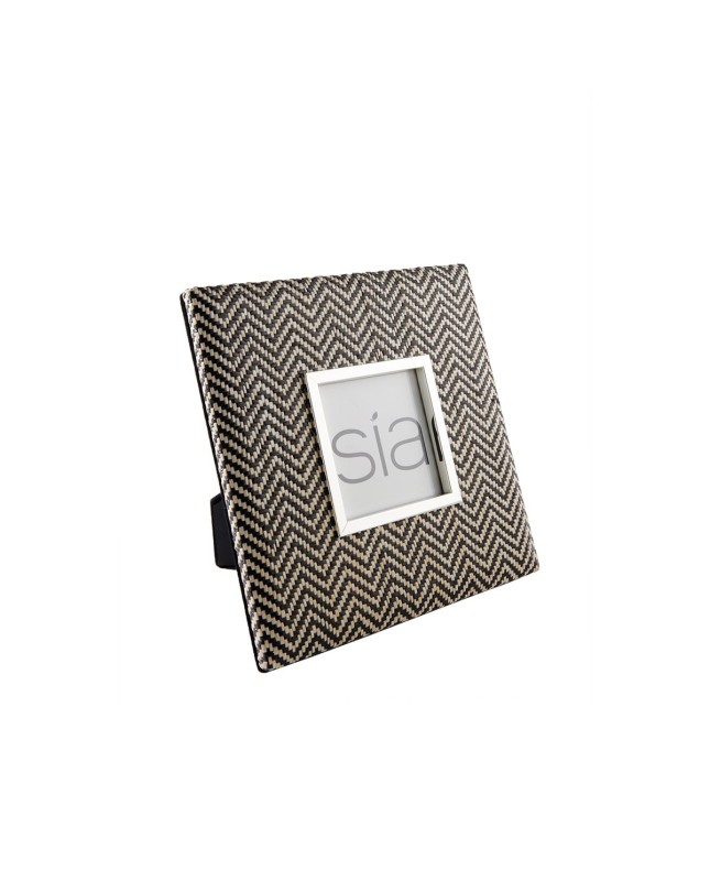 Description : Cadre carré ETHICS en paille tressée avec pied à l'arrière. Immortalisez vos plus beaux souvenirs dans ce cadre de qualité qui saura faire ressortir vos plus belles photos. Ce cadre, aux bordures au motif de vagues ondulées noires et son cadre interne argenté, sera parfait pour décorer une meuble, une table ou une étagère.Couleurs :Noir et blanc et bordure argentéeHauteur en cm :22Largeur en cm :19,5Pour photo :9x9Composition : 50% acier 20% paille tressée 10% feutre 20% verreEntretien: Nettoyer avec un ligne doux et sec et du spray nettoyant pour vitre sur le verre transparent.