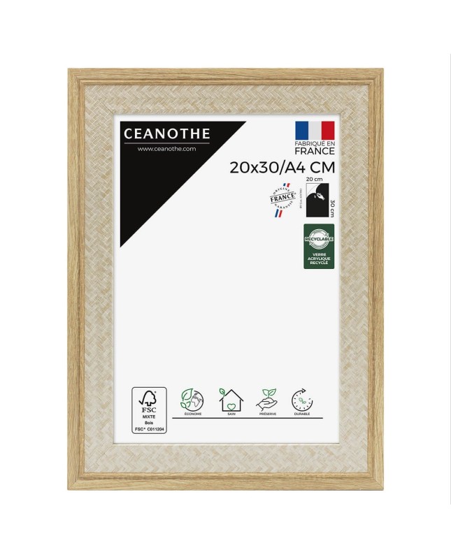 Description : Cadre photo classique et chic, Palma bois 20x30/A4 cm dispose d'une baguette couleur bois en résine recyclée à 80%. Fabriqué en France, ce cadre est recyclable. Il dispose d'un système d'accroches au dos pour être fixé au mur à l'horizontale et à la verticale ainsi que d'un Verre acrylique incassable recyclé à 70%, léger et très résistant pour protéger votre photo, affiche ou poster.