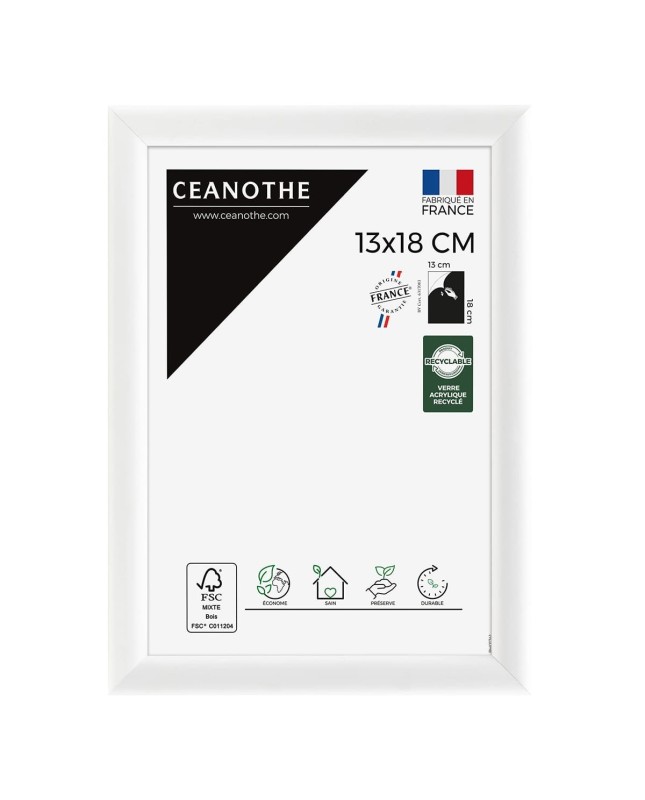 Cadre photo exposition blanc 13x18 cm bois massif fsc