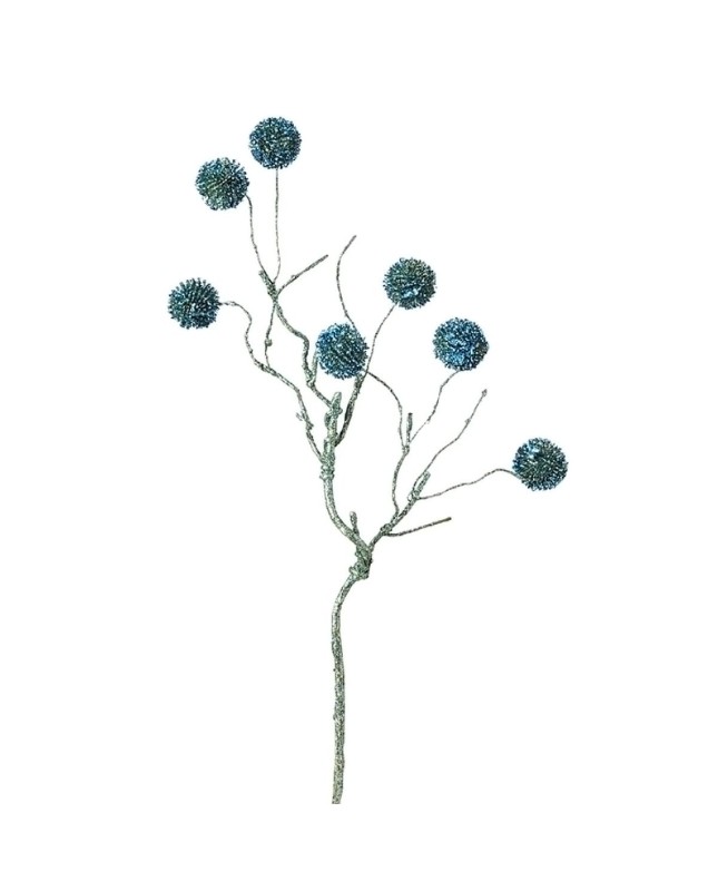 Branche de noël de pompons pailletés artificielle bleue H50
