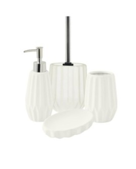 Description : Set de salle de bain - FACETTE - LEVASSEURCe set de salle de bain en céramique, fait partie de la gamme FACETTE.Il contient un distributeur de savon, un porte savon, un porte brosse à dent et une brosse WC.Cette gamme est conçue pour transformer vos accessoires de salle de bains en objet de décoration avec son effet de matière.Les pièces existent également à l'unité.CARACTERISTIQUES TECHNIQUES :Couleur: blanc ou bleuMatière: CéramiqueDimensions distributeur de savon : 7.5x7.5x17cmDimension porte-savon : 14x9.5x2.5cmDimensions porte-brosse à dents : 7.5x7.5x11cmDimensions porte-brosse WC : 11.x11.x40cm
