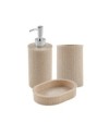 Description : Set de salle de bain beige - RETRO - LEVASSEURCe set de salle de bain en céramique, fait partie de la gamme RETRO.Il contient un distributeur de savon, un porte savon et un porte brosse à dents.Cette gamme est conçue pour transformer vos accessoires de salle de bains en objet de décoration avec son effet de matière.Les pièces existent également à l'unité.CARACTERISTIQUES TECHNIQUES :Couleur: BeigeMatière: PolyrésineDimensions distributeur de savon : 7.5x7.5x17.5cmDimension porte-savon : 10x13x3cmDimensions porte-brosse à dents : 7.5x7.5x12.5cm