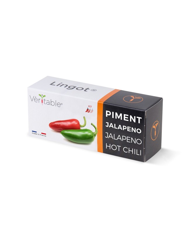 Description : Le piment Jalapeño est originaire du Mexique. Sa force moyenne de 5/10 sur l'échelle de Scoville explique son utilisation très large en cuisine : il relèvera les plats sans trop l'emporter sur les autres saveurs.Les Lingots® sont des recharges prêtes à l'emploi compatibles avec la gamme de potagers d’intérieur Véritable®. Conçus spécifiquement pour répondre aux besoins essentiels de vos plantes, ils intègrent le substrat, les nutriments et les graines pour un usage très simple et une croissance garantie.Le Lingot®est 100% végétal, et ne contient aucun produit de traitement. Il permet des récoltes saines et savoureuses.GERMINATION GARANTIE ''satisfait ou échangé''Si votre Lingot® ne germe pas normalement, Véritable® s'engage à le remplacer.UNE RICHESSE DE PLUS DE 70 SAVEURSHerbes aromatiques classiques, originales, jeunes pousses, mini fruits & légumes, fleurs comestibles... Mixez les saveurs, fusionnez les couleurs, et conjuguez le plaisir des sens à l’infini !