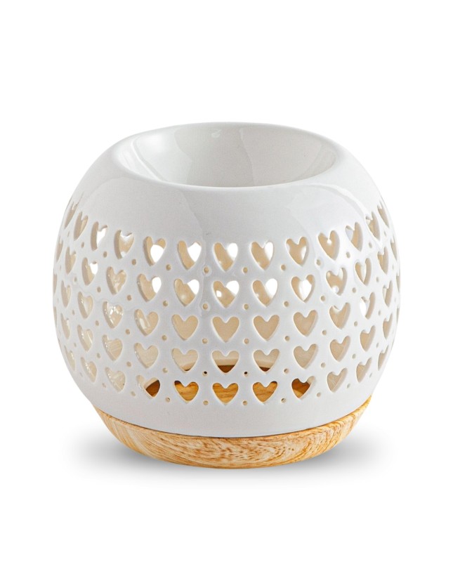 Description : Découvrez-le brûle parfum Coeur de Zen’ArômeIl fait partie de notre gamme Céramy qui rassemble nos brûle parfums fabriqués en céramique, matière naturelle. Chaque brûle-parfum est fabriqué artisanalement pour vous proposer un produit authentique qui fait rimer efficacité avec simplicité.Pourquoi choisir le brûle parfum Coeur ?- Pour son style épuré, minimaliste et naturel en céramique, ses ouvertures en cœur laissent échapper une douce lueur de bougie, créant ainsi une ambiance intime et chaleureuse.- Il est fabriqué en céramique. Un magnifique brûle parfum qui trouve sa place dans n’importe quel espace et vient créer une atmosphère chaleureuse et naturelle.- Pour sa conception : Il est conçu pour accueillir vos cires parfumées, senteurs, huiles essentielles et autres solutions parfumées.Comment l’utiliser ?Placez vos senteurs dans la cavité située en haut du brûleur. Allumez une bougie (non fournie) et placez là dans le support en céramique amovible. Pour l’arrêter, il suffit d’éteindre la bougie. La coupelle est simple à nettoyer. Attendre que les éléments refroidissent avant toute manipulation. Nos brûle-parfums doivent être utilisés avec des bougies chauffe-plat de diamètre 4 cm et d’un temps de combustion de 4 heures maximum. La bougie doit répondre aux normes en vigueurs. Veillez également à respecter les consignes de sécurités indiquées sur la bougie.