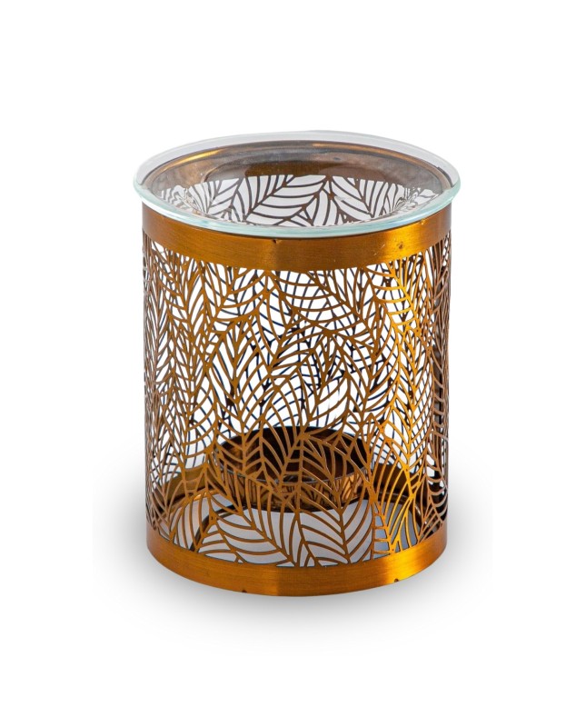 Description : Découvrez-le brûle parfum Leaves de Zen’ArômeIl appartient à notre collection metally, regroupant nos bougeoirs confectionnés à partir de métal et de verre, des matières naturelles. Chaque bougeoir est réalisé artisanalement afin de vous offrir un produit authentique alliant efficacité et simplicité.Pourquoi choisir le brûle parfum Leaves ?- Pour son style moderne, une fois allumé, ses motifs évoquant la nature deviennent presque hypnotiques, permettant à la douce lueur de la bougie de s'échapper et de créer une ambiance tamisée et délicieusement parfumée pour vos soirées et vos journées. - Il est fabriqué en métal et en verre. Un magnifique brûle parfum qui trouve sa place dans n’importe quel espace et vient créer une atmosphère chaleureuse et naturelle.- Pour sa conception : Il est conçu pour accueillir vos cires parfumées, senteurs, huiles essentielles et autres solutions parfumées.Comment l’utiliser ?Placez la bougie sur son support surélevé, mettez vos senteurs dans la coupelle en verre amovible (contenance 50 ml). À l’aide de la chaleur d’une bougie chauffe-plat (bougie non fournie), et en quelques instants, votre parfum se diffusera pour embaumer votre intérieur. Attendre que les éléments refroidissent avant toute manipulation. Nos brûle-parfums doivent être utilisés avec des bougies chauffe-plat de diamètre 4 cm et d’un temps de combustion de 4 heures maximum. La bougie doit répondre aux normes en vigueurs. Veillez également à respecter les consignes de sécurités indiquées sur la bougie.