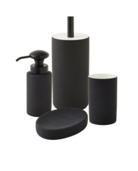 Description : Set de salle de bain noir - CITY - LEVASSEURCe set de salle de bain en céramique, fait partie de la gamme CITY.Il contient un distributeur de savon, un porte savon, un porte brosse à dents et une brosse WC.Cette gamme est conçue pour transformer vos accessoires de salle de bains en objet de décoration avec son effet de matière.Les pièces existent également à l'unité.CARACTERISTIQUES TECHNIQUES :Couleur: NoirMatière: CéramiqueDimensions distributeur de savon : 17.5x7.5x7.5cmDimension porte-savon : 12.4x8.6x2.7cmDimensions porte-brosse à dents : 11x7.5x7.5cmDimensions brosse WC : 8x8x36cm