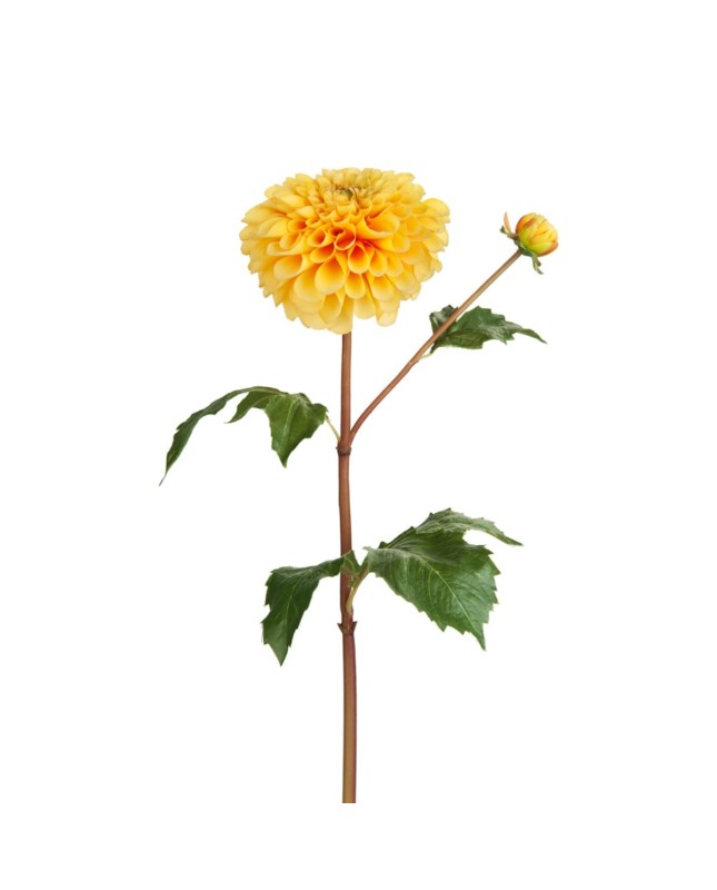 Description : Tige artificielle de Dahlia avec bourgeon. Le dahlia avec sa grande fleur double, aux pétales fins et pointus, apportera à votre intérieur une touche romantique et sobre. Le dahlia jaune symbolise la fidélité amoureuse, la reconnaissance tandis que le dahlia orange est déclaration d'amour extravagante et de bonheur partagé. Couleur : Orange / Jaune / Rose / FuchsiaHauteur : 50 cmDiamètre : 10 cmComposition : 40% polyester 40% plastique 20% fil de fer