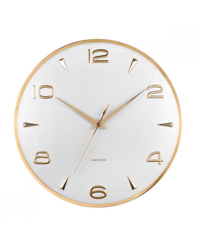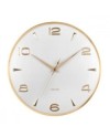 Description : Magnifique horloge au design très chic et sobre. Idéale dans une décoration classique avec ses couleurs satinées et ses chiffres dorés. Dimensions : Diam 40 x 5 cm Matière : Métal fonctionne avec 1 pile AA non fournie