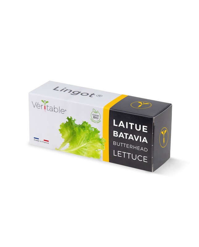 Description : Légèrement plus croquante que sa cousine la feuille de chêne, la Laitue batavia est succulente seule ou en mesclun, accompagnée d'une vinaigrette maison.Les Lingots® sont des recharges prêtes à l'emploi compatibles avec la gamme de potagers d’intérieur Véritable® . Conçus spécifiquement pour répondre aux besoins essentiels de vos plantes, ils intègrent le substrat, les nutriments et les graines pour un usage très simple et une croissance garantie.Le Lingot®est 100% végétal, et ne contient aucun produit de traitement. Il permet des récoltes saines et savoureuses.GERMINATION GARANTIE ''satisfait ou échangé''Si votre Lingot® ne germe pas normalement, Véritable® s'engage à le remplacer.UNE RICHESSE DE PLUS DE 70 SAVEURSHerbes aromatiques classiques, originales, jeunes pousses, mini fruits & légumes, fleurs comestibles... Mixez les saveurs, fusionnez les couleurs, et conjuguez le plaisir des sens à l’infini !