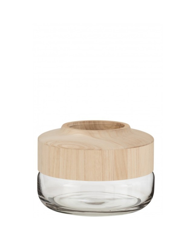 Vase bas bois verre marron clair H17 5cm