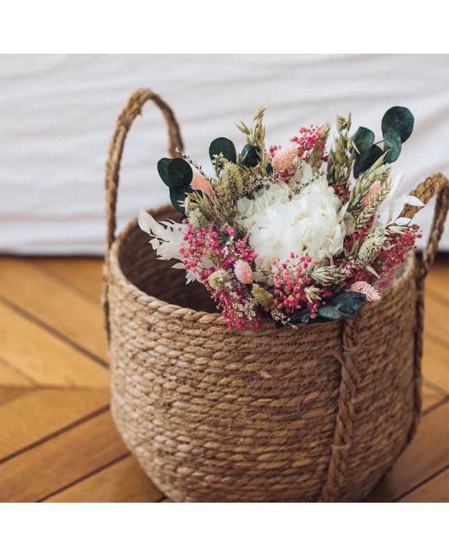 Description : Rencontrez Hector, notre bouquet signature, un véritable chef-d'?uvre floral qui incarne l'essence même de Flowrette. Ce bouquet est une composition harmonieuse de fleurs séchées et stabilisées, créant un spectacle visuel de textures et de couleurs. Hector se distingue par son hortensia central, qui apporte une touche d'élégance et de modernité. L'eucalyptus, avec ses feuilles persistantes, ajoute une note de fraîcheur et de vitalité. Les phalaris rose et le gypsophile rose apportent des nuances de rose, créant une atmosphère douce et romantique. La statice, le ruscus, l'avoine et le blé complètent le bouquet, ajoutant de la texture et du volume. Ce bouquet a été imaginé et créé par Élodie, co-fondatrice de Flowrette, qui incarne l'image de la marque. Elle a un talent inné pour l'harmonie des couleurs, composant des bouquets aussi doux que délicats. Hector est plus qu'un simple bouquet, c'est une pièce d'art floral, un symbole de l'amour et de l'appréciation. Il est parfait pour ajouter une touche de couleur et de nature à votre intérieur, ou pour offrir en cadeau à quelqu'un de spécial. Une autre envie, découvrez nos autres bouquets de fleurs séchées ou retrouvez l'ensemble de nos créations en fleurs séchées.