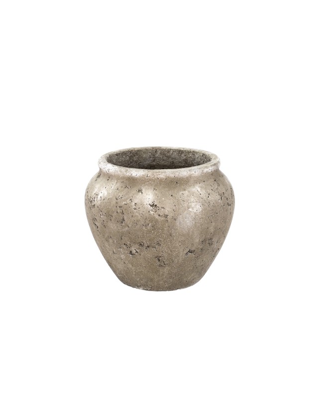 Description : Cache-pot décoratif, ciment gris avec finition rustique. P 30 x H 25 cm. Le cache-pot n’est pas étanche et n’est donc pas adapté pour une plantation. Il peut être utilisé pour une décoration et des fleurs sèches. Si vous voulez mettre une plante dans le cache-pot, plantez-la dans un pot adapté que vous glisserez dans le cache-pot.
