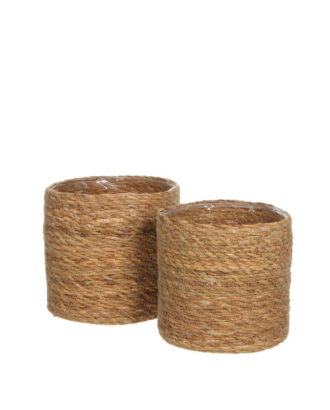 Lot de 2 cache-pots en jonc de mer marron clair H20