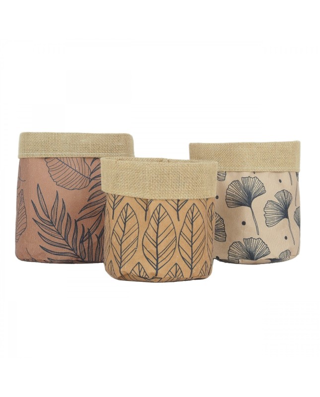 Description : Créez une ambiance tropicale à votre décoration avec ce lot de 3 cache-pots en tissu avec revers en jute et décor feuillage !Il fera de votre intérieur une vraie jungle urbaine grâce à ses motifs floraux et ses couleurs naturelles.Ses 3 tailles différentes s'adapteront à la dimension de vos pots :Modèle S : Diamètre 16 x Hauteur 16 cmModèle M : Diamètre 18 x Hauteur 18 cmModèle L : Diamètre 20 x Hauteur 20 cmProtégez vos plantes et votre maison tout en redonnant vie à vos pièces.Avec ces cache pots pour plantes d'intérieur, créez une jolie décoration naturelle et apporter du style à vos fleurs et plantes artificielles.Grâce à ces caches pots originaux au style jungle, transportez votre maison dans un tout nouveau monde.