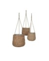 3 cache-pots suspendu en jonc de mer marron clair H90