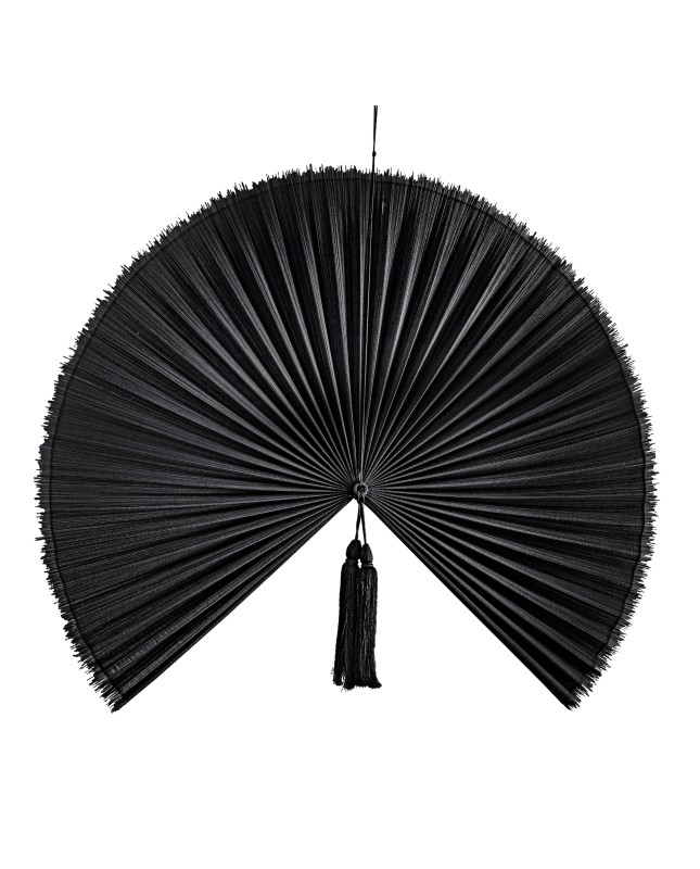 Description : En quête d’objets déco à suspendre ? Appréciez le style de cette Plaque décorative en bois noir Cette décoration murale éventail pompons séduit par ses jolies finitions. Cet ornement mural se suspend dans la chambre ou le salon avec beaucoup d’élégance ! Éventail en bambou. Finition pompons (L. 30 cm) et accroche au dos. Dimensions ouvert: l. base 110 x H. 56 cm.