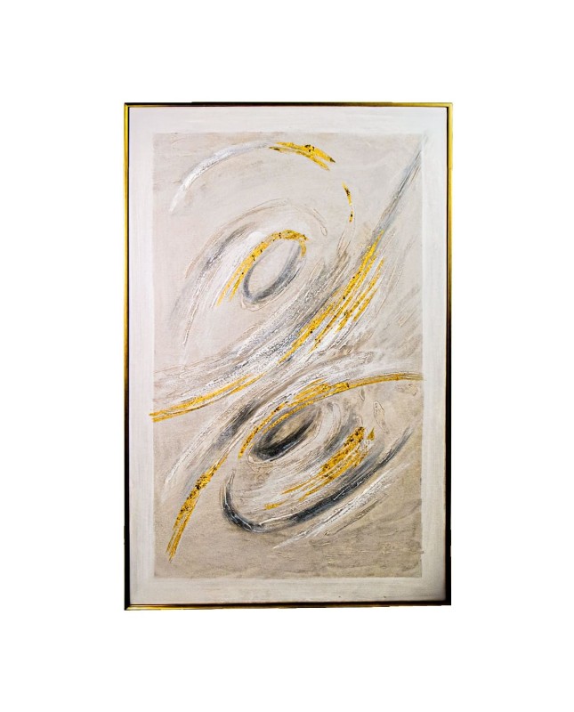 Description : Le tableau Metal BERNA est peint à la main à l'huile sur toile, utilisant une belle palette de tonalités de couleurs noir, doré et blanc. Son design abstrait apporte une explosion d'énergie et de modernité à n'importe quelle pièce. L'élégant cadre doré complète parfaitement l'œuvre, ajoutant une touche de sophistication qui rehausse la beauté du tableau, tandis que le châssis en bois garantit sa durabilité. Il comprend un système de fixation pratique, ce qui permet de l'accrocher à la fois en position horizontale et verticale, s'adaptant parfaitement à tout espace et style décoratif.