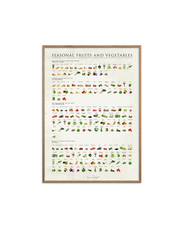 Affiche Seasonal fruits and vegetables Cadre en chêne - 30x40 cm