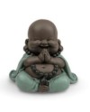 Statue décoration Mini Bouddha Rieur en résine Vert Marron - H7 5 cm