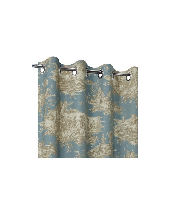 Rideaux Toile de Jouy bleu ciel beige